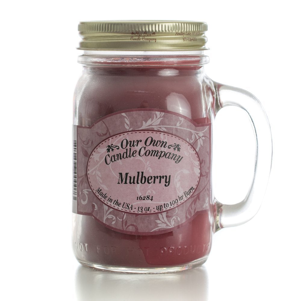 Mulberry 13oz scented candle in glass jar with handle and lid