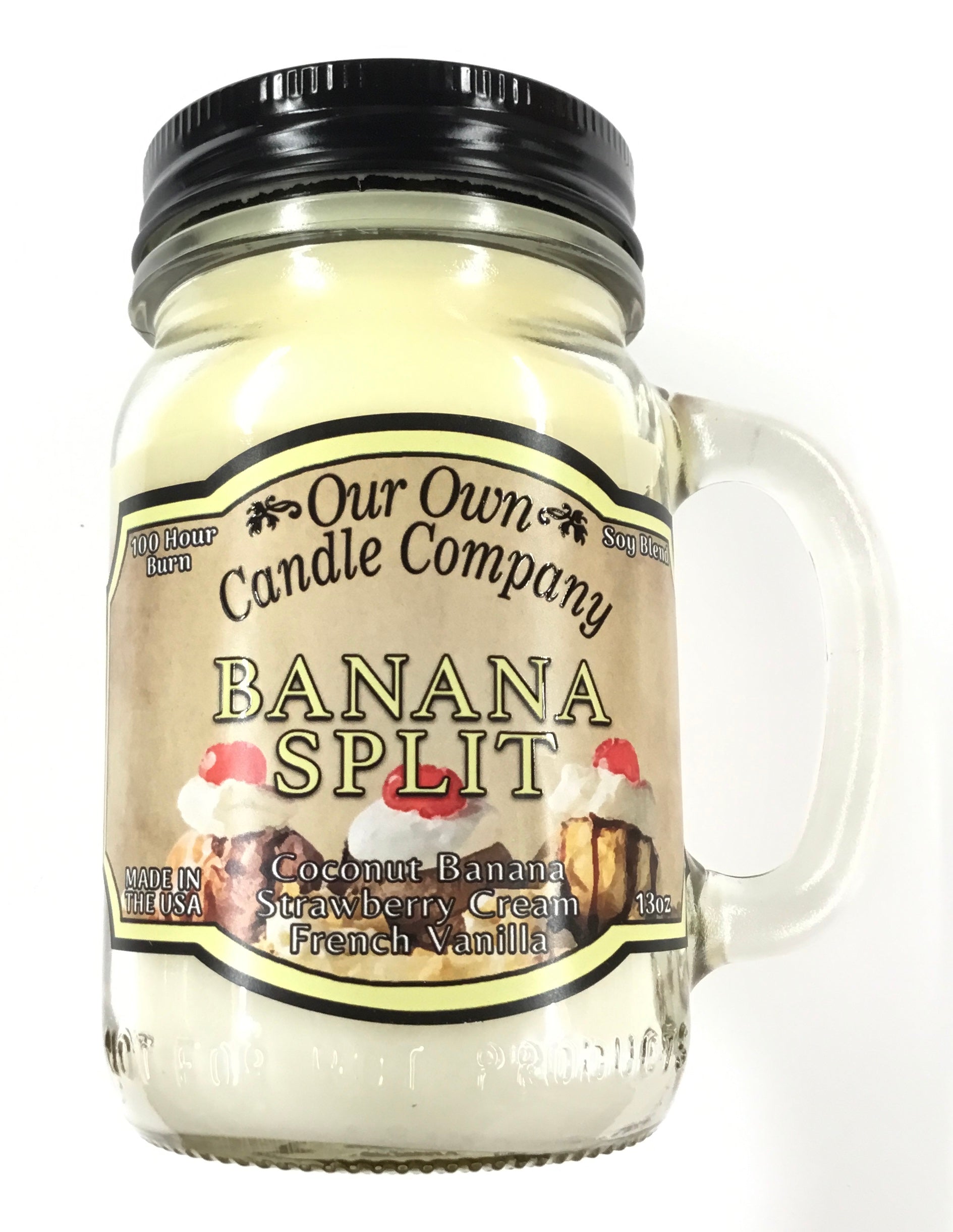 Banana Split 13oz scented candle in glass jar with handle and lid