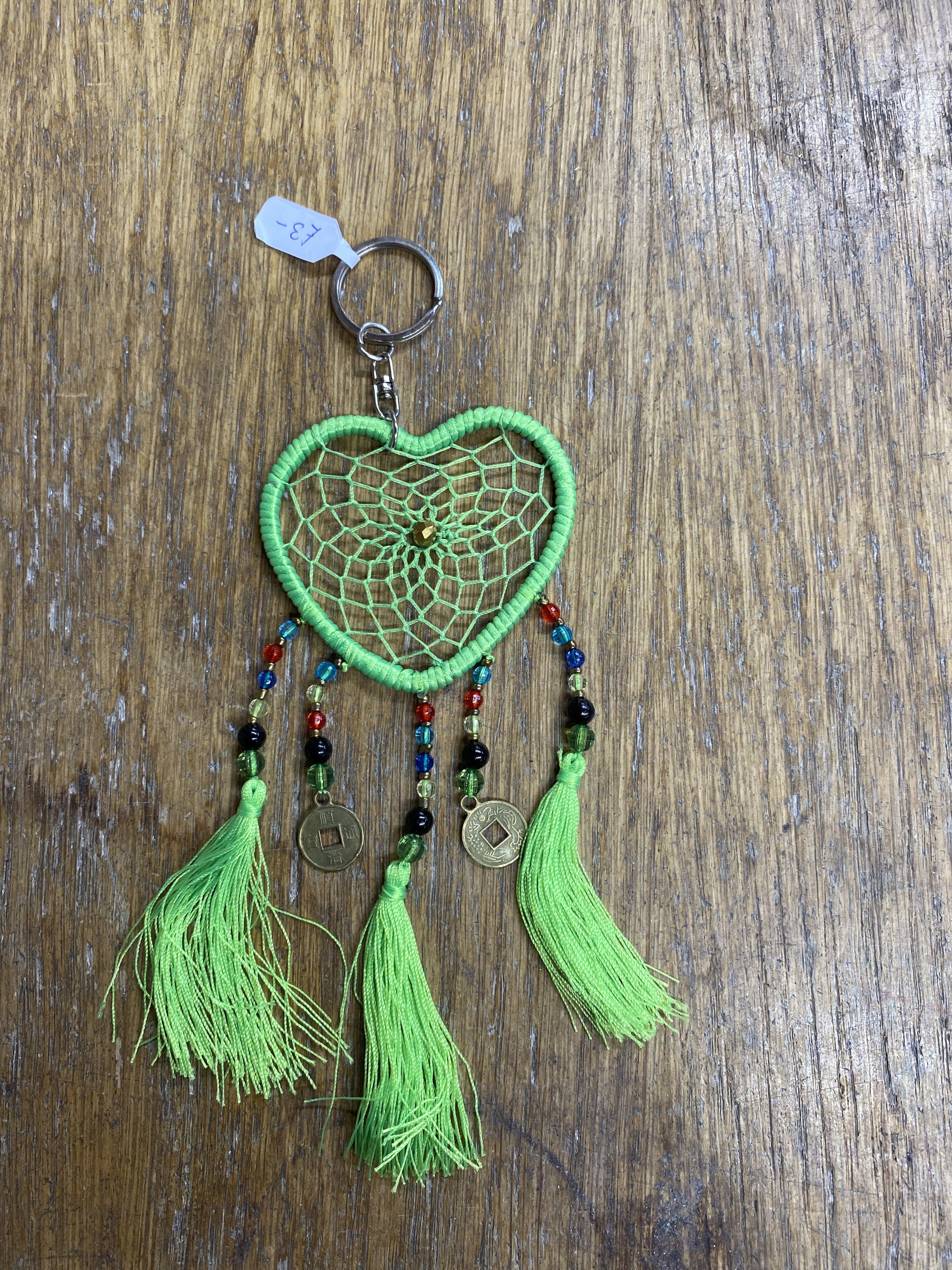 Bright lime Dreamcatcher Heart Key Ring with 3 tassles and 2 beaded drops.