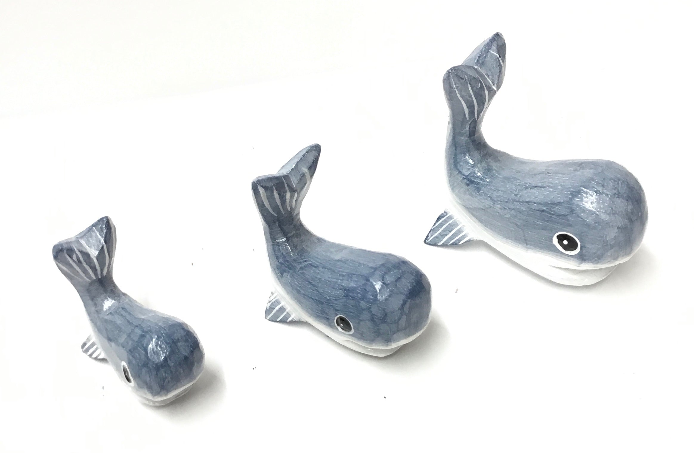 A SET OF 3 SMALL BLUE WHALES, C. 7CMS, 8CMS AND 10CMS