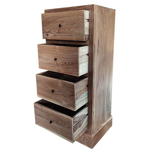 Our solid teak furniture is handmade using teak from sustainable plantations in Bali making each piece unique. We only deal direct with the families making the furniture. Teak is a natural hard wood which contains a lovely natural grain and is ideal for using indoors. This 4 Drawer tall Pillar unit is in a white wash finish and is an ideal storage unit.
