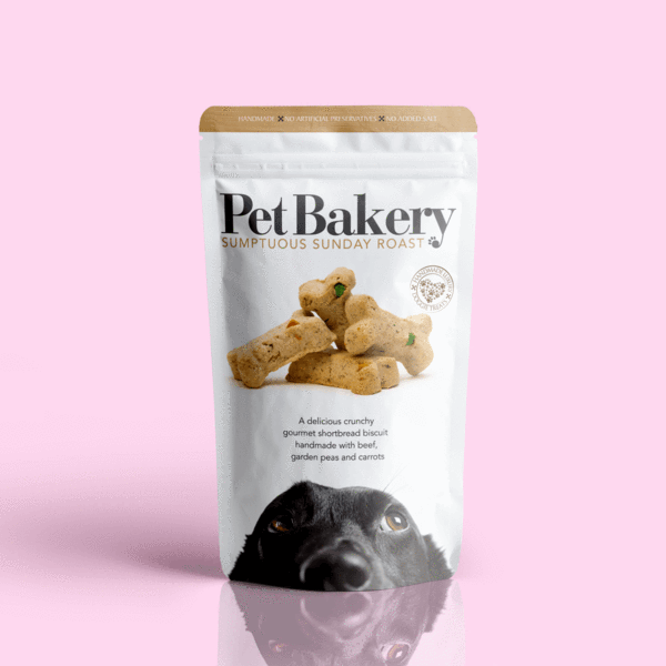 The Pet Bakery Sumptuous Sunday Roast Bones are a delicious crunchy gourmet shortbread biscuit made with beef, garden peas and carrots. Made with only top-quality ingredients, no artificial preservatives and no added salt. Composition : Flour, Margarine, Beef 16%, Carrots 3%, Peas 2%, Dextrose, Minerals, Rosemary Extract. Analytical Constituents : Protein 10%, Crude Oils 24%, Crude Fibre 0.1%, Crude Ash 2%.