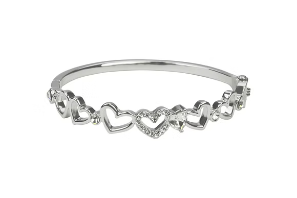 Rhodium Plated Crystal Heart bangle