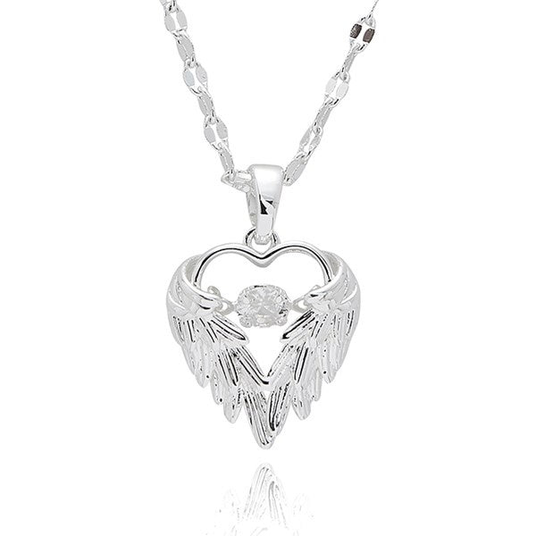 359690 ANGEL WINGS HANG CRYSTAL SILVER PLATED NECKLACE